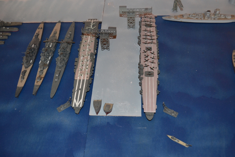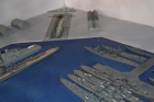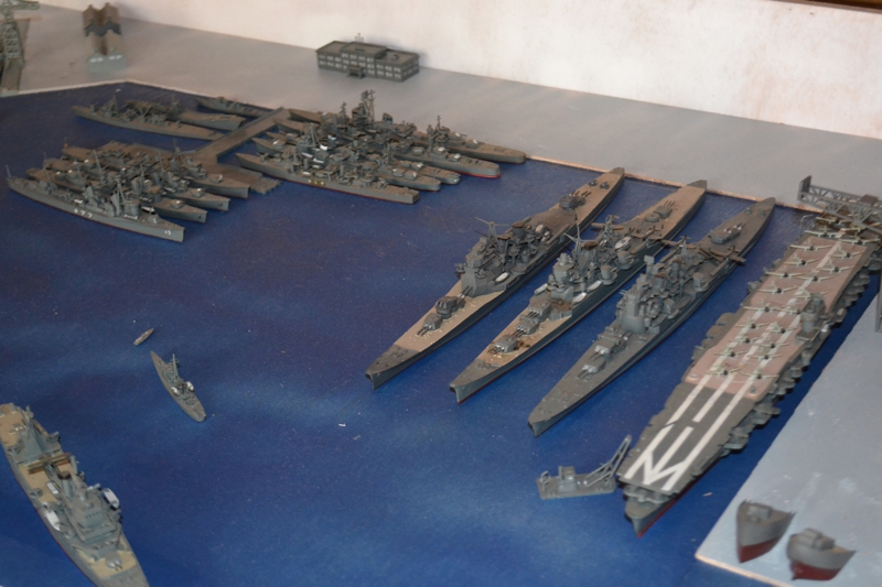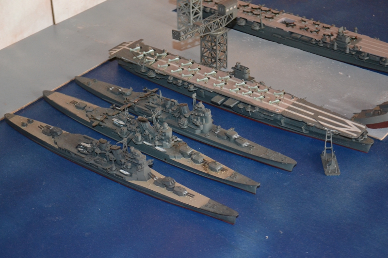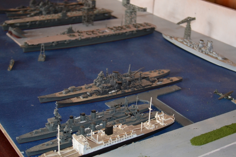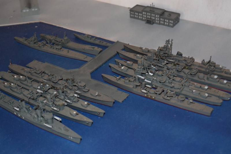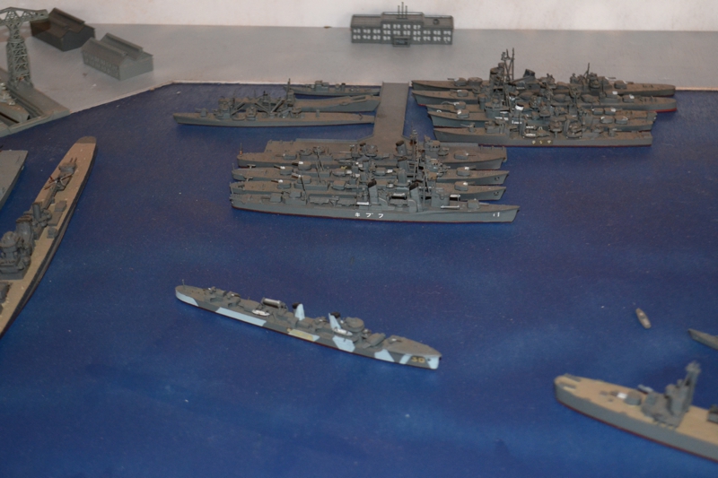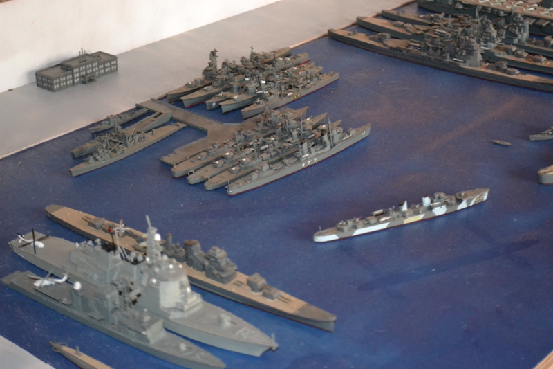 氷川丸に軽巡、重巡 向こう側にはなぜかグラフシューペが 軍港に隣接して飛行場96式陸攻、雷電 格納庫のなかには月光夜間戦闘機 なぜかB25が・・ 中央桟橋 空母飛龍と龍驤 駆逐艦 重巡など 空母に飛行機をのせると様になります。ゼロ戦、99艦爆、97艦攻 中央桟橋左には駆逐艦小艦艇の浮き桟橋があります イージス艦と護衛艦がなぜか混ざっています。 ブンカー 潜水艦の格納庫 ドックもあります。修理中の船はフレッチャー級駆逐艦 うき桟橋のむこうには司令部があります イージス艦、護衛艦、重巡 時代を超えた日本海軍軍艦たち 練習鹿島 軍港ジオラマTop 軍港ジオラマ 2 ページトップへ
