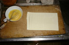 パイシートの上に溶き卵を 刷毛で塗る。