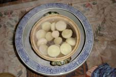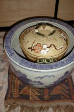 さて、その後、ギフトショー会場で火鉢を見つけました。山水画の火鉢大小2個組でなんと×,000円。早速初日一番で予約入れました。印判の染め付けで絵の出来は良くないのですが大きさが気に入りました。