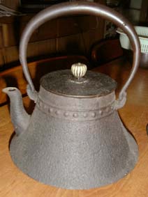 「HP楽しく見せていただきました。火鉢、炭で生活はしておりませんが、楽しみに遊んではおりますので、興味深くみました。さて、富士型の鉄瓶、萬龍堂のものと思われます。京都の老舗の鉄瓶で、良いもので あると聞いております。もりたかし」