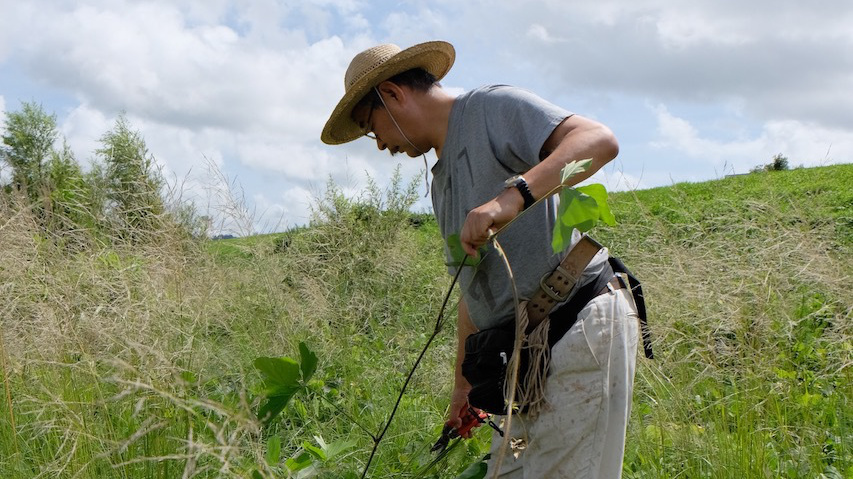 豊かな自然の中で葛を取り、手織りの技術をつないでおります。