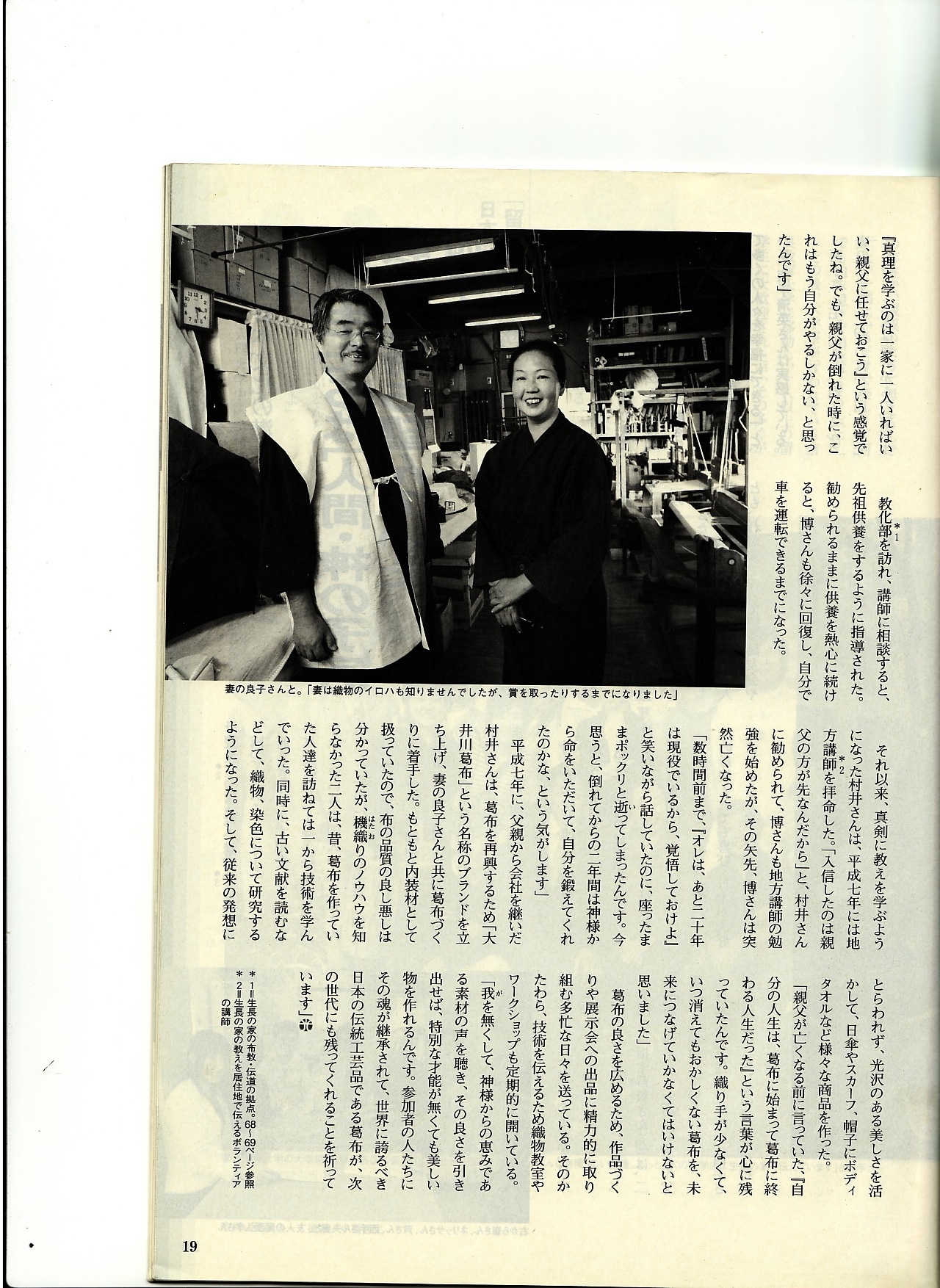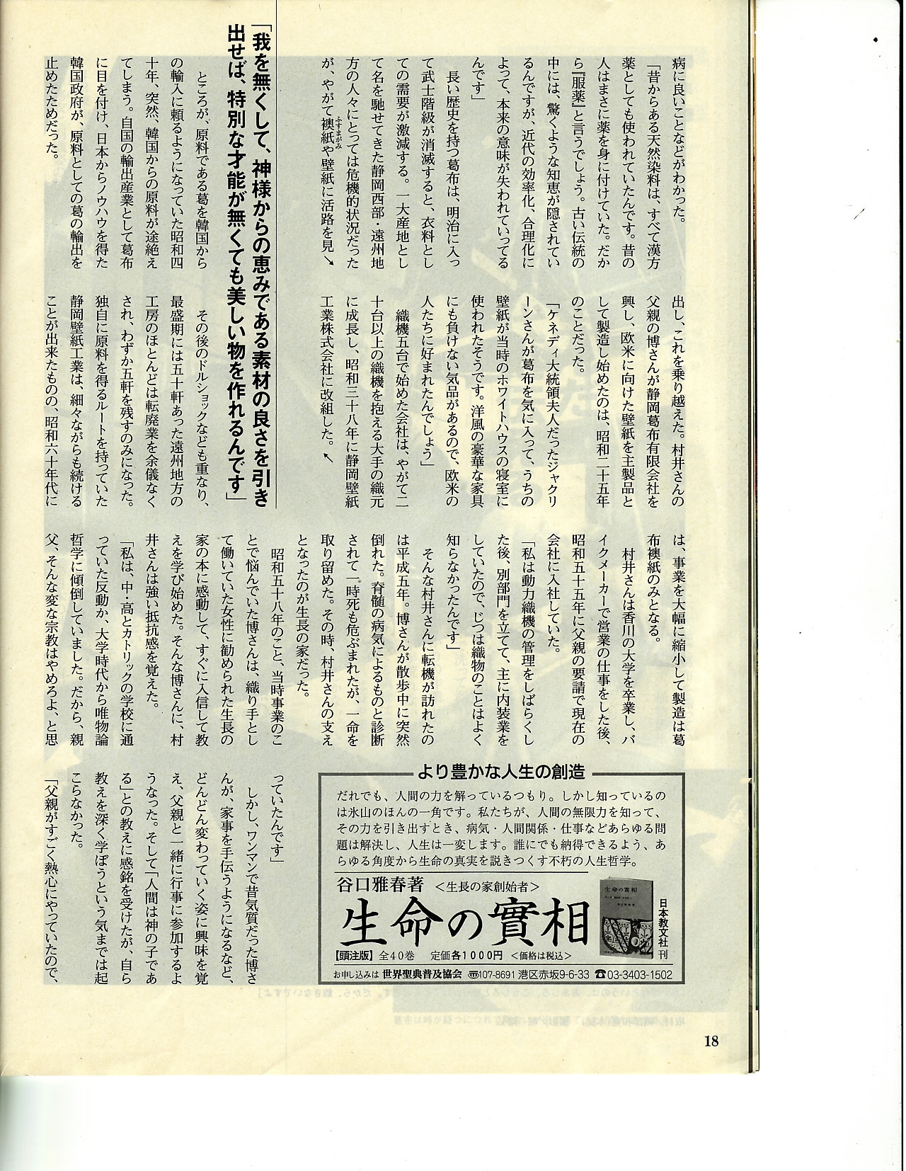 光の泉 生長の家普及誌 光の泉2007年2月号に 大井川葛布が掲載されました。 掲載雑誌メニュー Home掲載雑誌Top和樂ココラボ通信七緒チルチンびと26号チルチンびと20号光の泉掲載記事まとめ1掲載記事まとめ2七宝の塔掲載記事まとめ4美しいキモノ民芸の教科書花咲くnid2004キモノサロン2015すてきにハンドメイド
