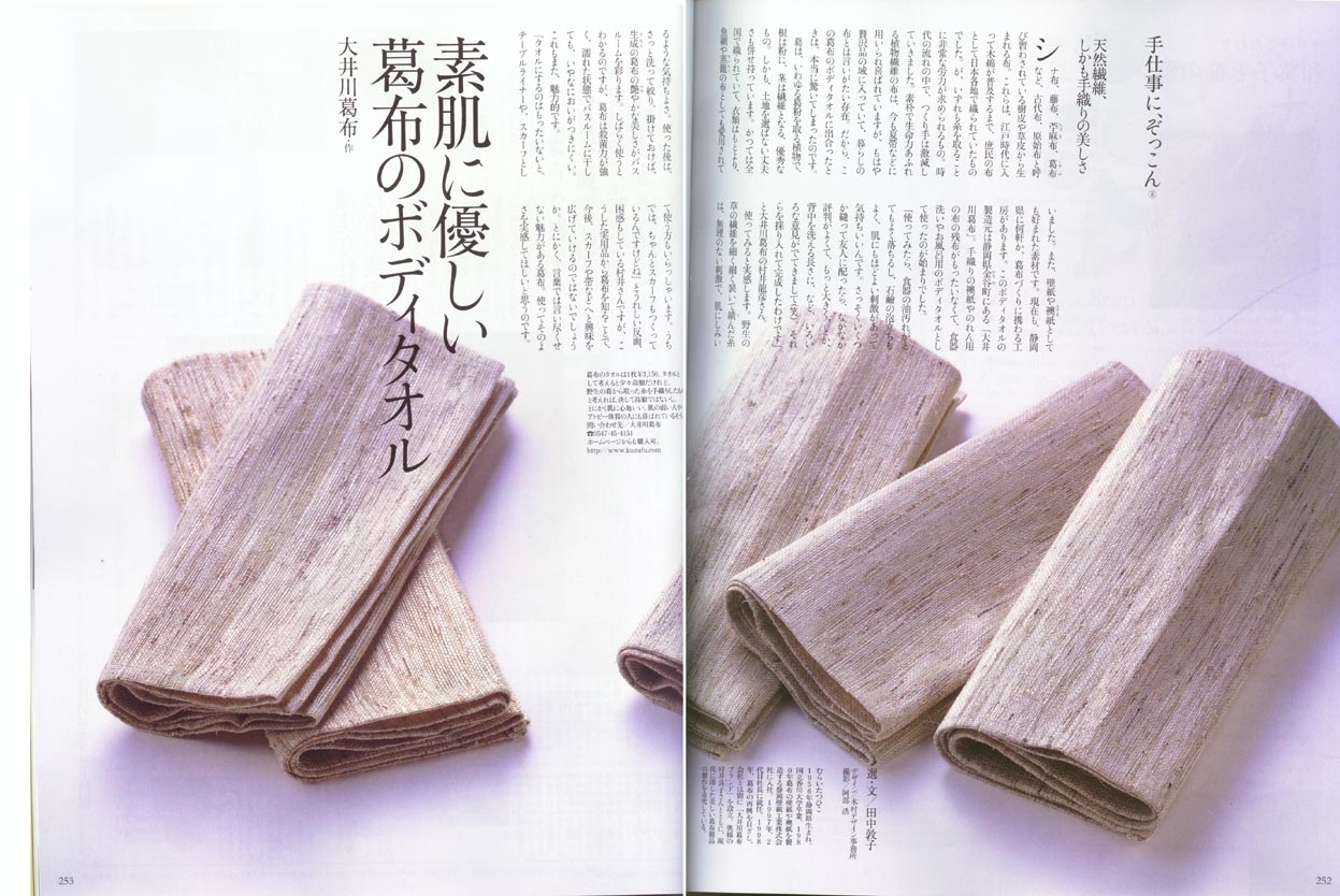■和楽 2004年5月号 素肌に優しい葛布のボディータオル 掲載雑誌メニュー Home掲載雑誌Top和樂ココラボ通信七緒チルチンびと26号チルチンびと20号光の泉掲載記事まとめ1掲載記事まとめ2七宝の塔掲載記事まとめ4美しいキモノ民芸の教科書花咲くnid2004キモノサロン2015すてきにハンドメイド