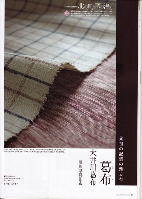 花咲く 2013年5月号 この本に4ページにわたって大井川葛布が掲載されています。 掲載雑誌メニュー Home掲載雑誌Top和樂ココラボ通信七緒チルチンびと26号チルチンびと20号光の泉掲載記事まとめ1掲載記事まとめ2七宝の塔掲載記事まとめ4美しいキモノ民芸の教科書花咲くnid2004キモノサロン2015すてきにハンドメイド